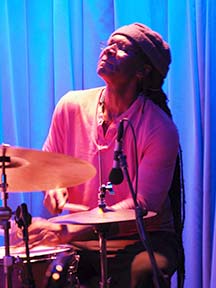"Over the years I've worked with musicians from many different cultures," Rudolph says, "and what I've found interesting is not only the material information of what they're playing, the rhythms or the scales, but the deeper part, their creative attitudes and approaches towards making music. With the musicians in Moving Pictures, my goal is to inspire them to do exactly that, to project what the Dogon people of Mali call the 'Mi', the inner spirit of the person projected through the voice of the instrument." That inner voice has been important to Rudolph as instrumentalist as well as composer. "I spent years and years studying all kinds of drumming from different parts of the world, but the drummers who really influenced me most were Elvin Jones, Big Black and Tony Williams, because they were able to have their own voice on the instrument and you could recognize them in one note." It's important, he stresses, not to segregate his role as percussionist or hand drummer from his mantle of composer. The two are intimately entwined; he is, in some ways, his own most vital collaborator. "My compositional consciousness is as informed by the resonance of skin on skin when I strike my drum as it is by my study of Schillinger's mathematical scales. What I do on hand drums as a percussionist is a central dynamic in my approach as a composer." |